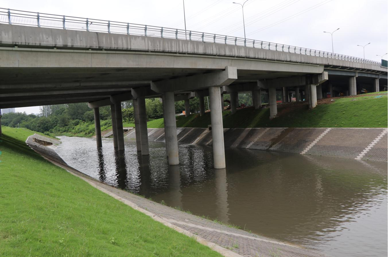 项目规划设计阶段,结合市民意见与建议,bv1946伟德官网主动对接属地政府,多次征询主管部门和管养部门意见,按照设计施工运营一体化理念统筹谋划、精准施策。本次桥梁改造不仅消除了既有老桥结构安全隐患,极大提升了繁华大道的通行能力;对既有十五里河阻水护砌进行拆除和水工改造,极大地提升了十五里河泄洪能力;同步建设下穿京台高速污水主管网,连通了十五里河截污及高铁南站片区既有污水管网,极大提升了现有污水系统运行能力并为接入飞龙桥污水泵站预留条件;同时提升了京台高速两侧空间,为京台高速远期加宽扩能预留条件;优化了跨京台高速范围落水管设置,最大限度降低了后期养护难度。全方位践行了合肥市“规建治”一体化理念,极大提高了政府投资效能。